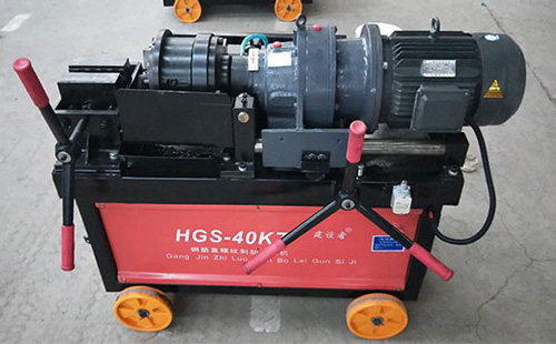 鋼筋滾絲機最常見的就是40型的滾絲機,這里主要介紹40型鋼筋滾絲機。GS-40型鋼筋直螺紋滾絲機可一次裝夾完成從剝肋到滾軋螺紋的加工過程。加工螺紋的牙形飽滿,尺寸精度高,機械強度高。 既可加工正扣螺紋,也可加工反扣螺紋。操作簡單、結構緊湊、工作可靠,具有獨特的刀具自動開合機構。 可加工直徑范圍為16-40mm的HRB335和HRB400級鋼筋。